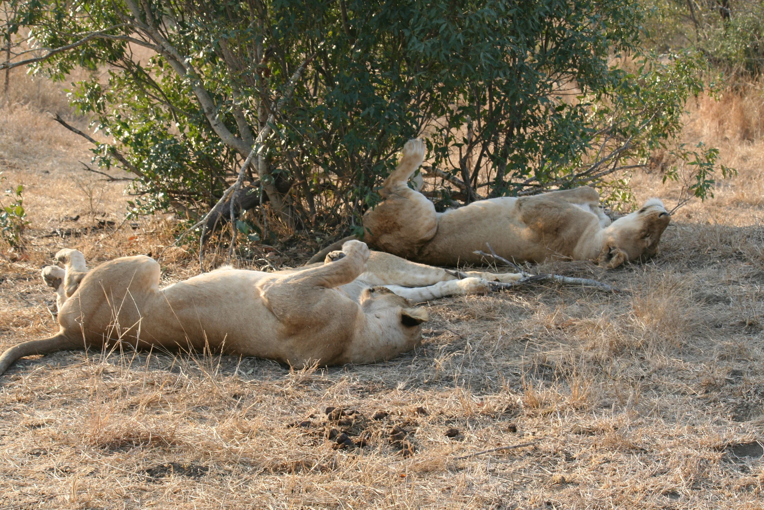 During our first sighting, we came around a bend and there was a set of lionesses sleeping. They didn’t flinch. They stirred slightly, yawned, rolled on their backs, and continued sleeping. Our presence didn’t bother them and though they appeared harmless, we knew better than to get out and arouse them.